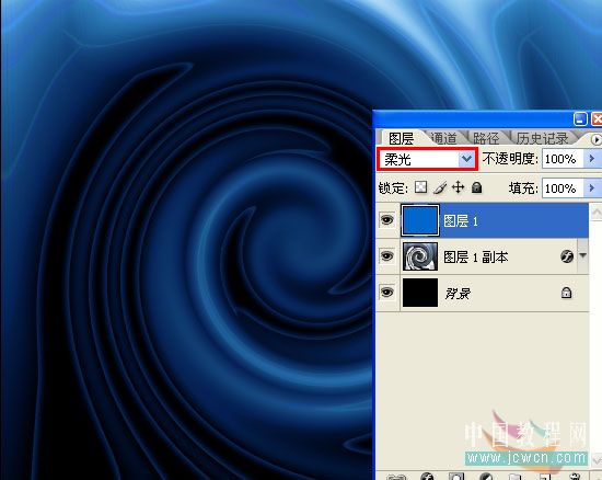 五、復制一層,得到圖層1副本,按ctrl+t調(diào)出自由變形工具,旋轉(zhuǎn)90度,得到如圖效果