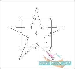十九、新建一層,畫一個五角星,選擇直接選區(qū)工具,選中如圖路徑節(jié)點,按ctrl+t調(diào)出自由變形工具,按shift+alt改變路徑節(jié)點如圖