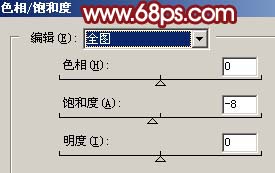 8、創建色相/飽和度調整圖層,參數設置如圖8,9,效果如圖10。
