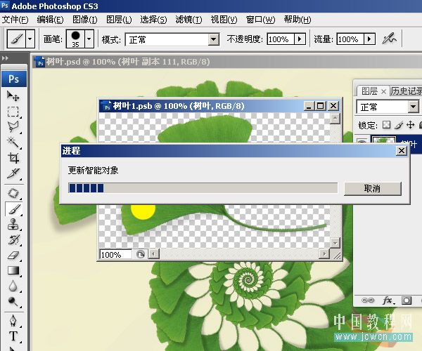 使用這個方法,我們也可以把智能對象中的樹葉完全去除,換成另外一個圖案,大家快打開photoshop試一試吧。