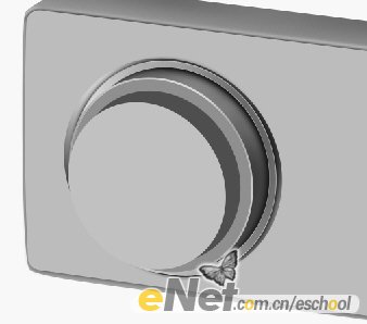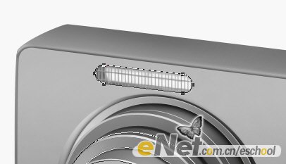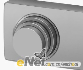16.用路徑工具勾出如下圖所示的形狀,然后轉成選區,并填充灰色,然后根據光照方向用加深工具涂出按鈕的暗部,再用減淡工具涂出亮部,效果如下圖所示: