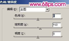 | 9、創建色相/飽和度調整圖層,參數設置如圖10,把飽和度調大一點,效果如圖11。 |