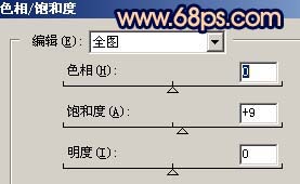 5、創(chuàng)建色相/飽和度調(diào)整圖層,參數(shù)設(shè)置如圖8,效果如圖9。