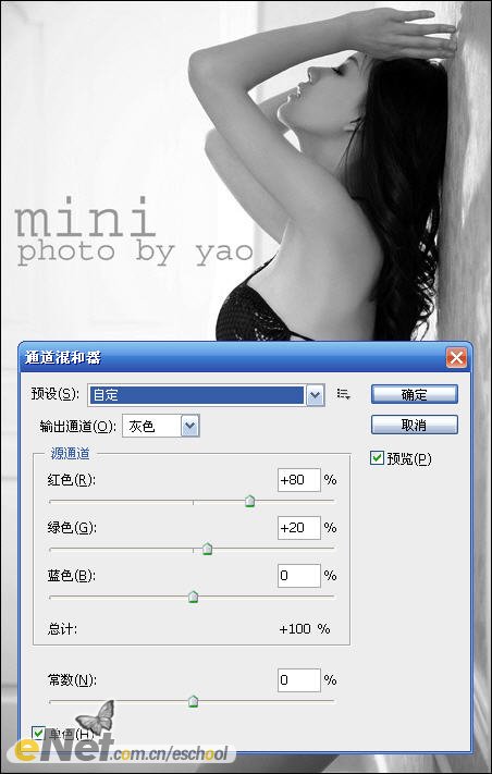 打開原圖,復制一層,執行通道混合器,設置參數如圖所示:
