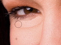 步驟 5、選擇修復筆刷工具(),按住 alt 并點擊鼠標選擇一處光滑皮膚,釋放alt 和鼠標左鍵,利用鼠標涂抹眼睛下方的細紋。