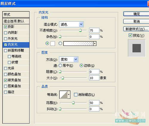雙擊圓的那個(gè)圖層,彈出圖層樣式對話框,選擇描邊,設(shè)置如下(這里大小按自己要的來就行了,覺得差不多就可以了`)