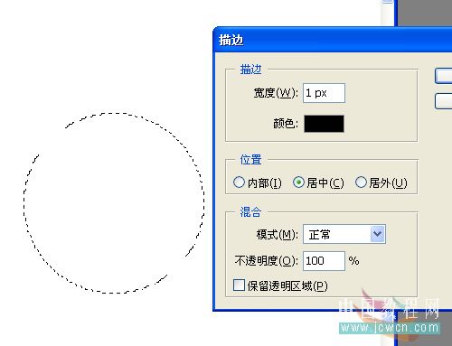 在背景圖層上新建一個(gè)圖層,用橢圓選框工具,按住shift鍵拉出一個(gè)正圓,然后選擇編輯——描邊,如圖