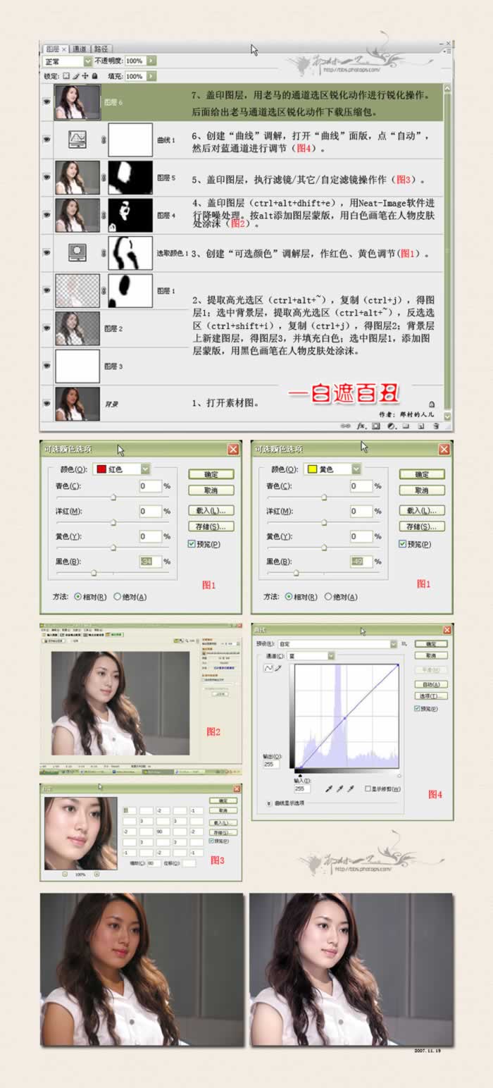一白遮百丑,并不說教程中素材mm很丑,而是指用此方法,可以修飾前期照片之不足,而使照片更加完美。
