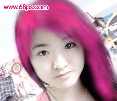 11、新建一個圖層,把前景顏色設置為:#f83b95,然后用畫筆工具把頭發部分適當涂一下,如圖13,然后把圖層混合模式改為“正片疊底”,圖層不透明度改為:30%,效果如圖14。
