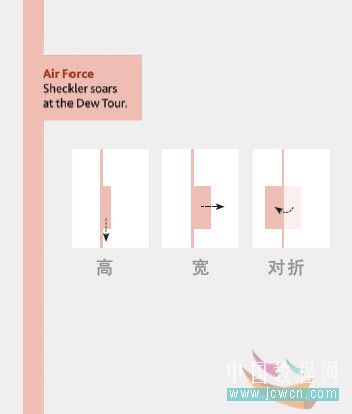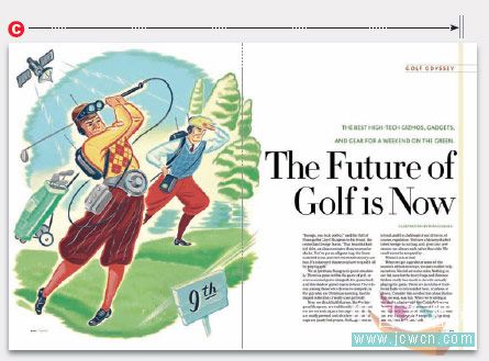 c :這里可以說(shuō)是一個(gè)標(biāo)準(zhǔn)的雜志版面(插圖 - 標(biāo)題 - 正文),這時(shí)垂直線條去到了最右邊,而同時(shí),它與上方的欄目文字相交接。