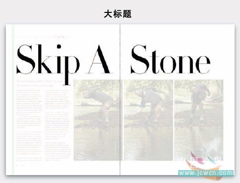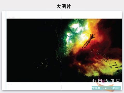 超大圖片——通常橫跨兩個(gè)對(duì)開(kāi)頁(yè)里——對(duì)讀者能夠產(chǎn)生巨大的沖擊力。在處理大圖片時(shí)關(guān)鍵要做到只有一個(gè)視覺(jué)焦點(diǎn),沒(méi)有復(fù)雜的背景。