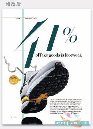 垂直柱狀元素與矩形元素形成了象旗幟的一個(gè)區(qū)域,使到里面的文字很容易被人留意。“旗幟”必須與“旗桿”接觸,可以放在圖片的上方。這本雜志的編輯深諳如何吸引人的視線之道,他們充分利用這個(gè)小小的元素來(lái)首先吸引讀者的注意力。里面的文字甚至可以象上圖一樣還加上一個(gè)小題目。這個(gè)元素在實(shí)際應(yīng)用中可以根據(jù)版面及圖片元素等實(shí)際情況來(lái)進(jìn)行不同形式的調(diào)整。