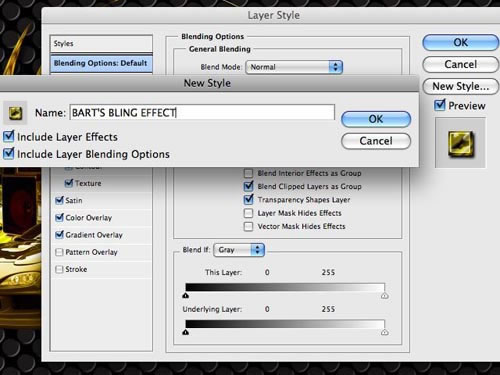 好了,現在效果完成了,讓我們保存它,以后它可以用在任何需要的地方。點擊新建樣式,給它起個名字,把下面的2個選項都選上。