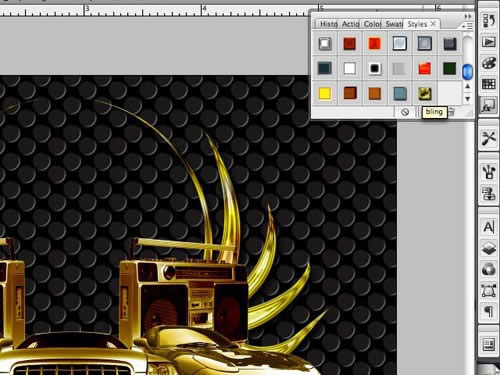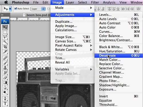 首先選擇一些圖片,我選擇了一個彩色的播放機圖像,為了讓它看起來象大塊的金子,所以對它進行去色處理。使用“去色”(shift+ ctrl+u)