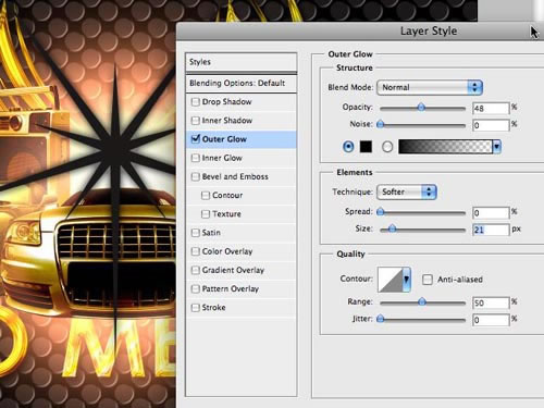 好了,現在用新筆刷添加一些閃光。然而,是不是覺得這些閃光可以更好點,對它使用新的層樣式,為什么不了。