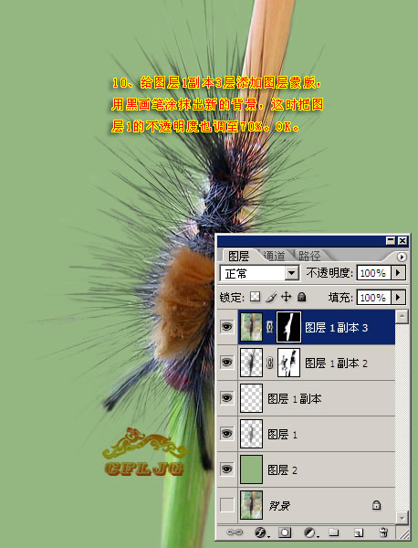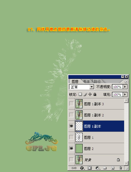 為了使圖效果更好,圖層1副本層的不透明度也應(yīng)調(diào)至70%,最后蓋印圖層,適當(dāng)?shù)匿J化以使達(dá)到更佳的效果。