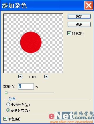 2、執行菜單/濾鏡/雜色/添加雜色,設置如下。