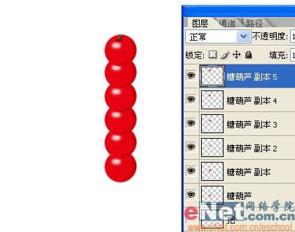 11、選擇移動工具,按住shift+alt鍵向上拖動糖葫蘆,就能復制出另外5個糖葫蘆。