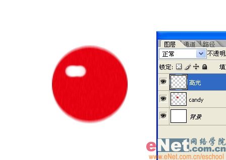 1、新建一個文件,背景為白色。新建一個圖層,命名為糖,用橢圓工具畫一個橢圓,填充紅色。
