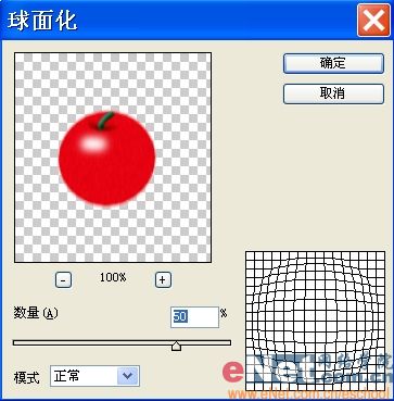 9、執行菜單/濾鏡/扭曲/球面化,設置如下,讓糖葫蘆更立體。