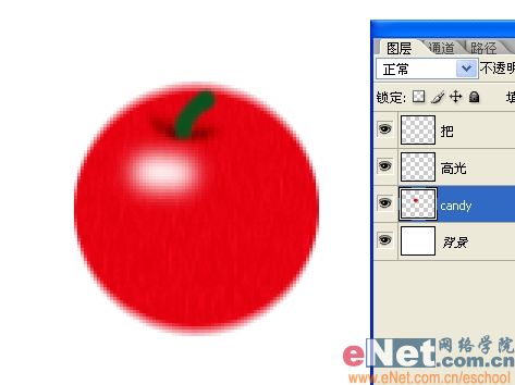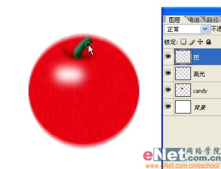 6、選擇糖圖層,用加深工具涂抹出把兒根部的陰影。