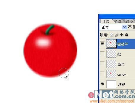 10、用加深工具涂抹出糖葫蘆右側面的陰影。