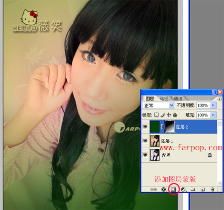 加上蒙版,選擇漸變工具-黑色、白色,從左上往右下拉;