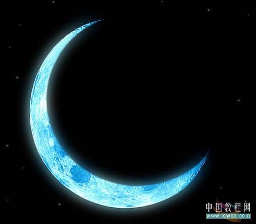 8.一個月亮有點孤單,我們可以用星星筆刷給月亮周圍加點星星,不過不要太亮,免得搶走了主角的風采