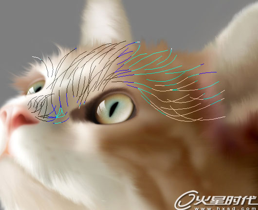 (4)在涂抹過程中,根據位置的不同,可以不斷的調節畫筆的強度,控制毛發的長短、疏密程度。