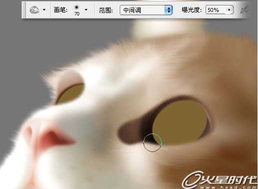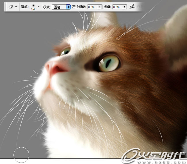 (5)繼續繪制出毛發的光影關系,以及毛發的顏色,可以配合“減淡工具