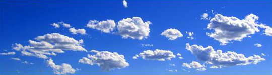 第六步:如上圖所示,“天空”顯得有些太“空”了,我們來為它添加一些云朵。打開素材圖片【云】,選擇幾朵云彩,然后將其粘貼到【月之仙境】中,效果如下圖所示。(林棲者語:原文中此處沒有詳細的步驟。我簡單說一下我的做法,僅供大家參考。首先是使用【魔棒工具】或者【快速選擇工具】在一朵云彩上點擊,將其選中,為了使選區(qū)不是太生硬,可以進行1至2像素的羽化,然后按【ctrl+c】鍵復(fù)制,在【月之仙境】中按【ctrl+v】鍵粘貼。然后按【ctrl+t】鍵,調(diào)整圖層的位置及大小。為了讓云朵和天空融合的更好,可以適當降低圖層的不透明度。重復(fù)上面的操作,添加其它的云彩,直到得到滿意的效果。)