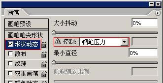 1.選擇 畫筆的樣式 ,勾選鋼筆壓力。筆的粗細由需要畫的線條粗細來決定,沒有定數;鳥身框架選擇尖角畫筆,羽毛選擇柔角畫筆。