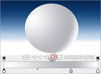 | 2、創建雪球。新建一層,用隨圓選框工具畫一個圓,設置漸變顏色為:#ffffff,#b8b7bd,#ffffff,給選區拉一個徑向漸變,取消選區。效果如下: |