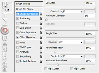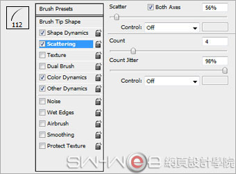 12、選擇沙丘草筆刷,設置筆刷的參數如下: