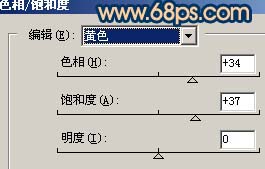 | 2、創建色相/飽和度調整圖層,選擇黃色,用吸管選擇樹木的顏色,參數設置如圖3,選擇藍色用吸管選取天空的顏色,參數設置如圖4,效果如圖5。 |