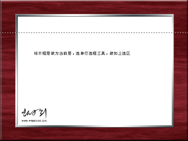 | 6、回到木紋圖層,用矩形選框工具選區下圖所示的選區。 |