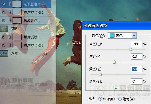 | 6、新建可選調(diào)整層數(shù)據(jù)如圖。目的調(diào)整背景顏色。膚色--天空顏色可根據(jù)你自己的喜歡來調(diào)整。主要是調(diào)藍(lán)色和青色。 |