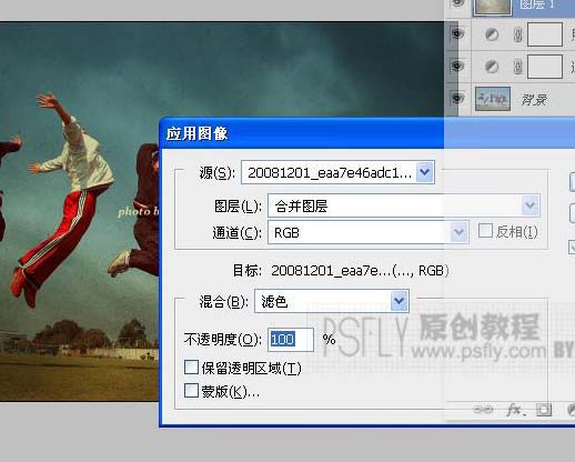 | 3、打開下圖素材拖進來,自由變換調(diào)整好素材大小,混合模式改為:正片疊底,再對素材圖層 > 應(yīng)用圖像,數(shù)據(jù)如圖。 |