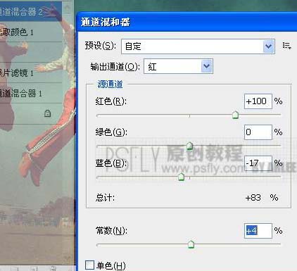| 5、再次新建通道混合調(diào)整層,數(shù)據(jù)如圖。 |