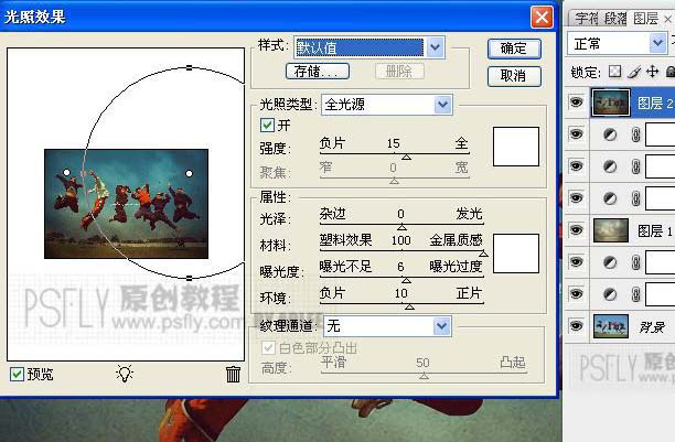 | 7、蓋印可見圖層-濾鏡-渲染-光照效果..數(shù)據(jù)如圖..光點可一多增加幾個..隨意發(fā)揮。 |