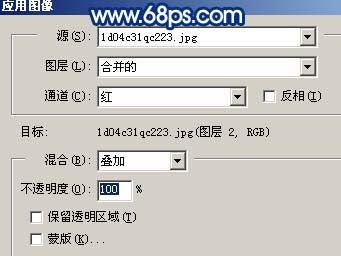 | 3、新建一個圖層,蓋印圖層,執行:圖像 > 應用圖層,參數設置如圖4,效果如圖5。 |