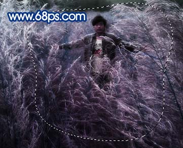 | 7、選擇套索工具,把人物周圍部分選出來,如圖10,按ctrl + alt + d羽化,數值為50,確定后按ctrl + j把選區的內容復制到新的圖層,圖層混合模式改為“濾色”,圖層不透明度改為:50%,效果如圖11。 |