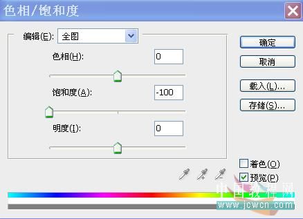 5、按ctrl+u鍵打開“色相/飽和度”,對話框,將圖像的飽和度調整到-100,如圖11。