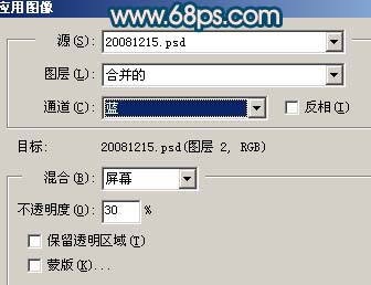 | 2、執(zhí)行菜單:圖像 > 應(yīng)用圖像,參數(shù)設(shè)置如圖3,效果如圖4。 |