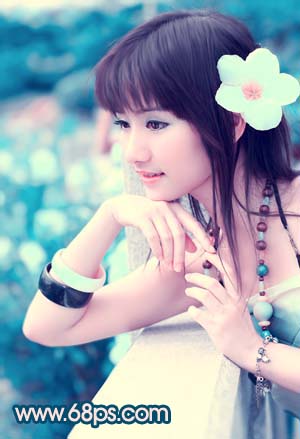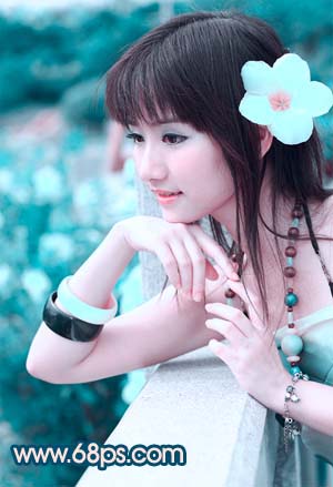 | 4、創(chuàng)建曲線調(diào)整圖層,參數(shù)設(shè)置如圖7,對藍(lán)色進(jìn)行調(diào)整,效果如圖8。 |