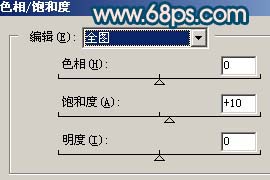 | 7、創(chuàng)建色相/飽和度調(diào)整圖層,參數(shù)設(shè)置如圖14,效果如圖15。 |