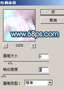 | 6、新建一個(gè)圖層,按ctrl + alt + shift + e蓋印圖層,執(zhí)行:濾鏡 > 藝術(shù)效果 > 繪畫涂抹,參數(shù)設(shè)置如圖12,確定后加上圖層蒙版用黑色畫筆把人物部分擦出來,效果如圖13。 |