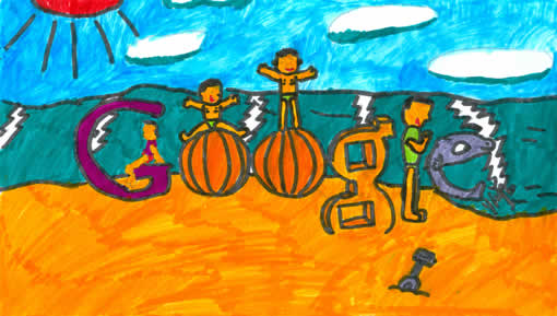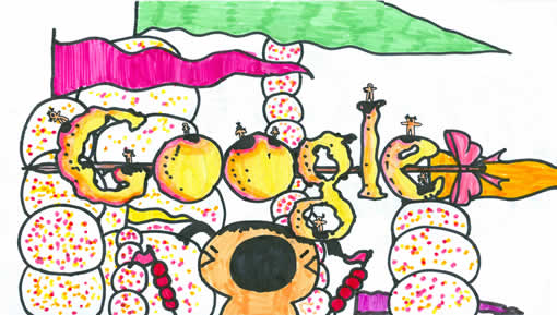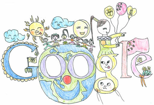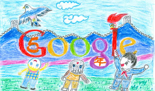 此作品表達(dá)了我對(duì)新北京、新中國的熱愛。兩個(gè)主體建筑,一個(gè)是中央電視臺(tái)新址,它被評(píng)為現(xiàn)代世界十大建筑之一;另一個(gè)建筑是著名的國家游泳館“水立方”,為北京奧運(yùn)會(huì)水上項(xiàng)目提供了支持,多少奧運(yùn)健兒在這里刷新了新紀(jì)錄。這兩個(gè)建筑充分體現(xiàn)了北京的現(xiàn)代化與宏偉。google 標(biāo)志中的 “l” 字母通過變形,變化成一棵大樹,結(jié)合圖畫下方的花朵,充分體現(xiàn)了北京的綠色與環(huán)保,兒童放飛氣球,代表祖國的未來蒸蒸日上,更加美好、和諧。