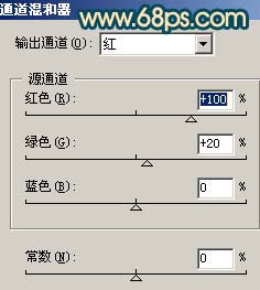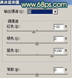 | 11、創建通道混合器調整圖層,參數設置如圖14-16,效果如圖17。 |