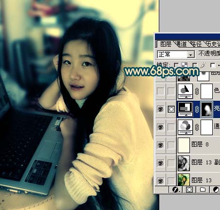 | 10、新建一個圖層,填充顏色:#fdfbe5,然后把圖層混合模式改為“正片疊底”,效果如圖13。 |